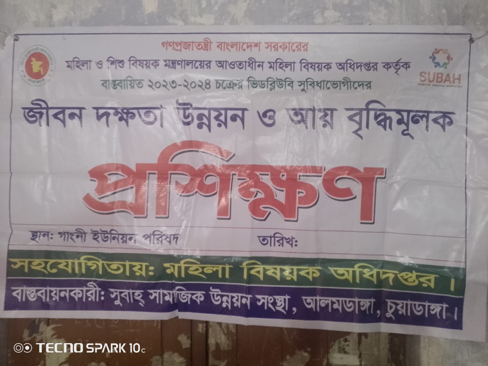 On October 16, 2024, a rice distribution event was conducted at Gangni Union Parishad, under the banner of the Vulnerable Women Benefit (VWB) program. The event was organized by Subah Samajik Unnayan Sangstha with support from the Department of Women Affairs, operating under the Ministry of Women and Children Affairs.