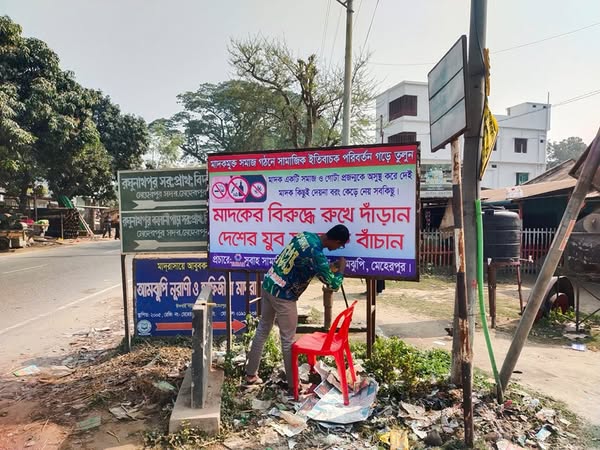 As part of its ongoing public awareness initiatives, Subah Samajik Unnayan Sangstha installed a public awareness signboard near Amjhupi Hat on the Meherpur–Chuadanga Road to promote awareness against drug abuse.