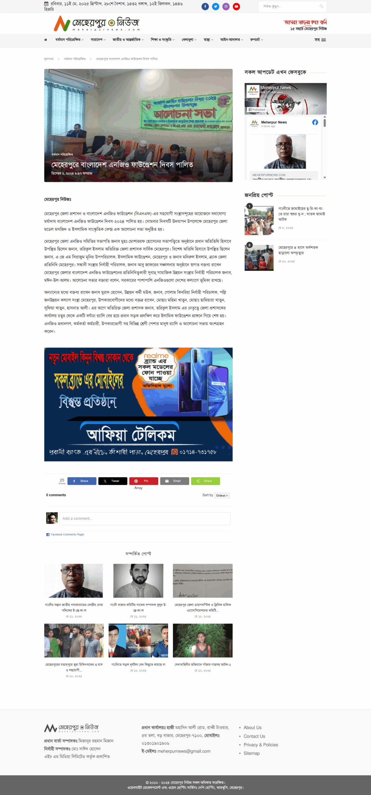 Meherpur News, December 2, 2024, Bangladesh NGO Foundation Day 2024 was observed with due significance in Meherpur through a joint initiative of the Meherpur District Administration and partner organizations of the Bangladesh NGO Foundation (BNF).