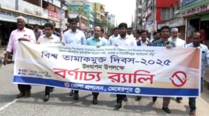On the occasion of National No-Tobacco Day 2025, Subah Samajik Unnayan Sangstha organized a human chain and leaflet distribution program in Meherpur, in