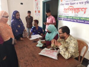A special event was organized at Jamjami Union Parishad, where women beneficiaries under the Vulnerable Women Benefit (VWB) program received income-generating training and rice distribution as