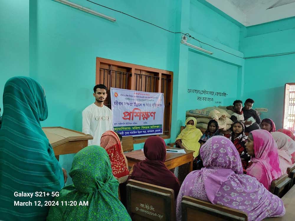 On March 4, 2024, a Life Skills and Income Generation Training session was conducted at Ailhas Union Parishad under the Vulnerable Women Benefit (VWB) Program for the fiscal year 2023–2024. The initiative was implemented by Subah Samajik Unnayan Sangstha with the support of the Department of Women Affairs.