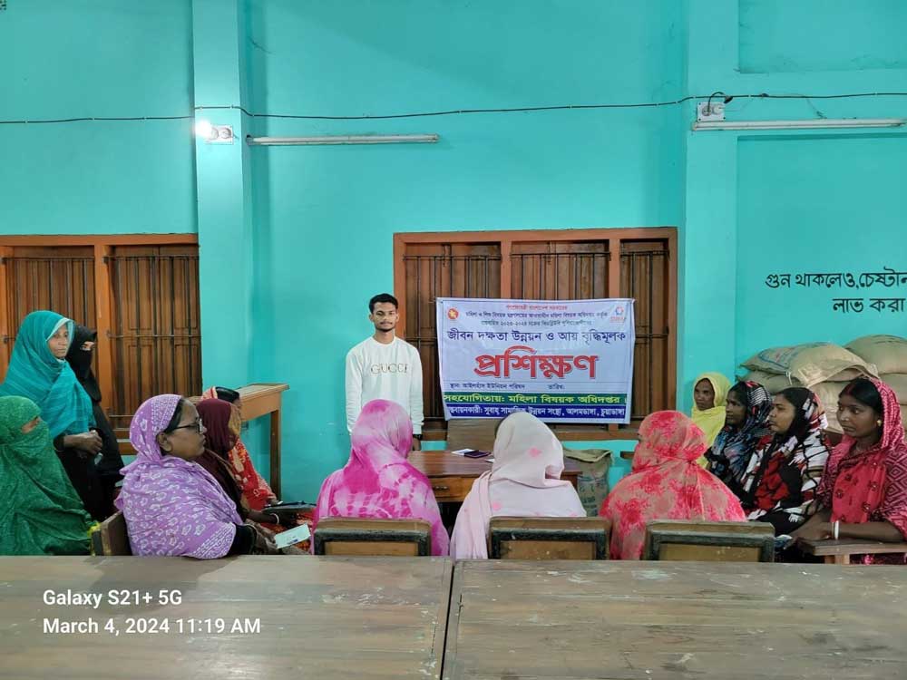 On March 4, 2024, a Life Skills and Income Generation Training session was conducted at Ailhas Union Parishad under the Vulnerable Women Benefit (VWB) Program for the fiscal year 2023–2024. The initiative was implemented by Subah Samajik Unnayan Sangstha with the support of the Department of Women Affairs.