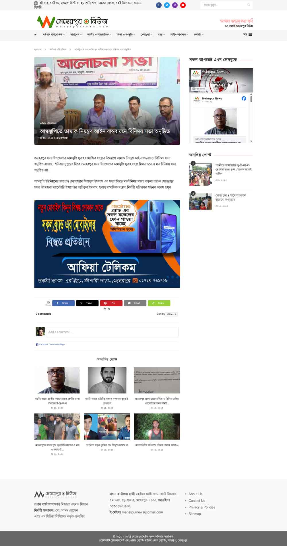 Meherpur News, May 18, 2024, An exchange meeting on the implementation of the Tobacco Control Law was held on Saturday afternoon at the auditorium of Subah Samajik Unnayan Sangstha in Amjhupi, Meherpur Sadar Upazila.