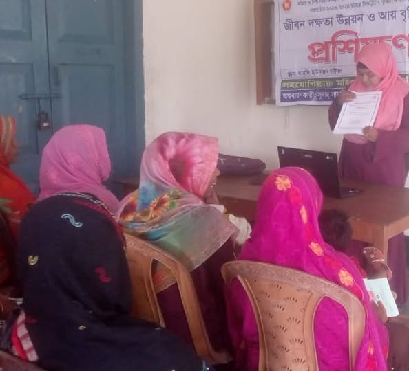 With the support of the Department of Women Affairs under the Ministry of Women and Children Affairs, and implemented by Subah Samajik Unnayan Sangstha, an Income-Generating Training Program, along with a session on Positive Social Change Indicators and Rice Distribution, was successfully organized for Vulnerable Women Beneficiaries (VWB).
