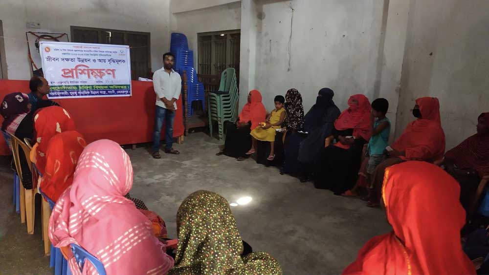 On April 1, 2024, an income-generating skills training session was held at the Tetulbaria Union Parishad hall room under Gangni Upazila. The program was organized by Subah Samajik Unnayan Sangstha with the support of the Department of Women Affairs, operating under the Ministry of Women and Children Affairs.
