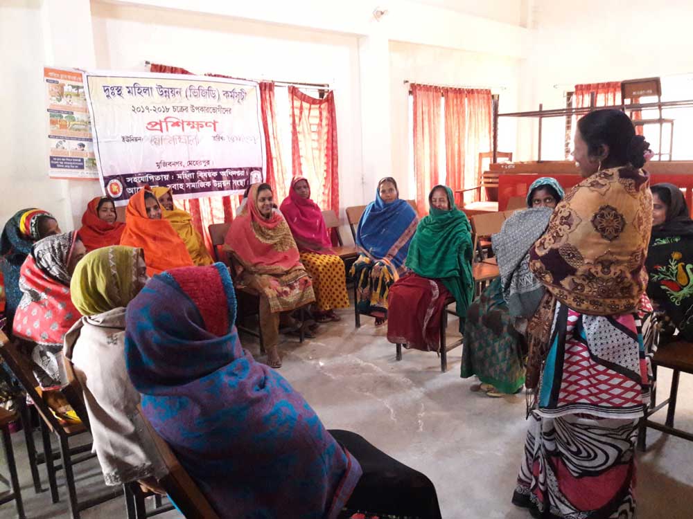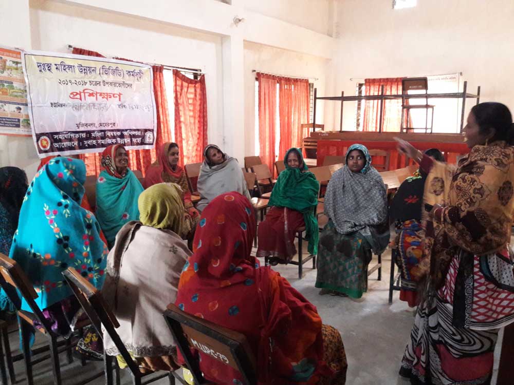 An income-generating training program is being conducted for Vulnerable Group Development (VGD) beneficiaries of the 2017–2028 cycle at the Monakhali Union Parishad under Mujibnagar Upazila. The initiative is being implemented by Subah Samajik Unnayan Sangstha, with support from the Department of Women Affairs.