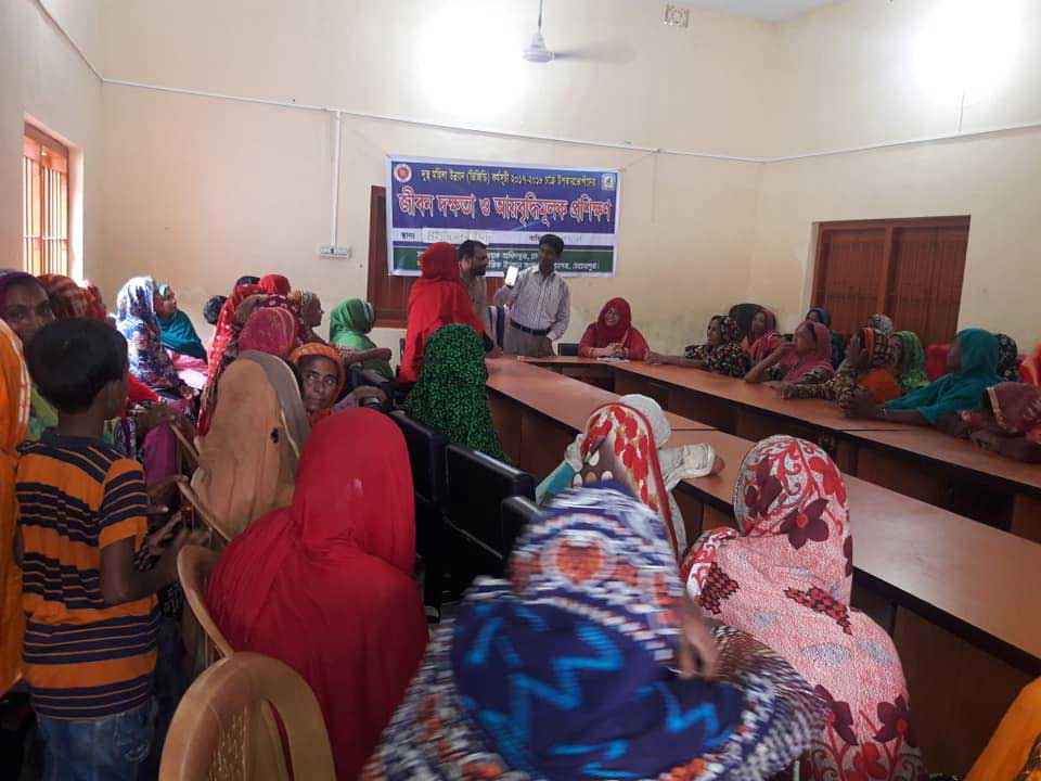 On July 31, 2018, Subah Samajik Unnayan Sangstha, in collaboration with the Department of Women Affairs, organized a special Life Skills and Income-Generating Training Program for Vulnerable Group Development (VGD) members. The event took place at the Mahajanpur Union Parishad Hall Room in Mujibnagar Upazila.