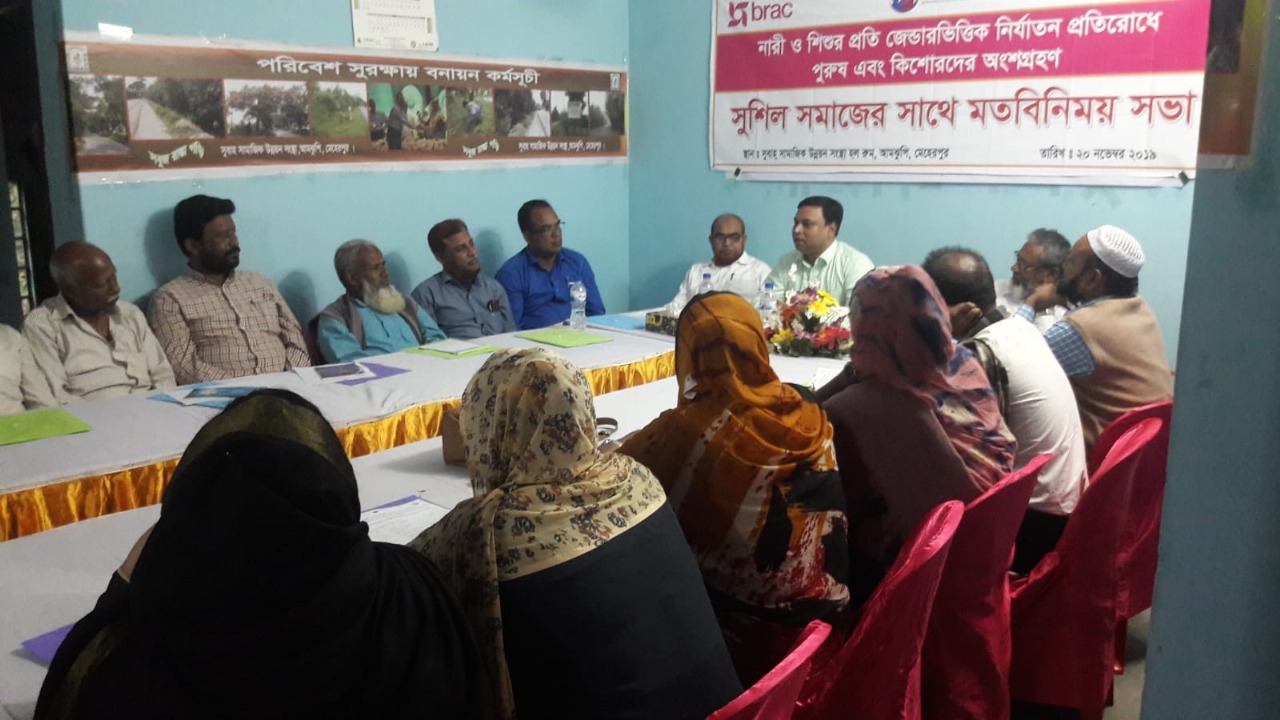 A discussion meeting titled “Engaging Men and Boys to Prevent Gender-Based Violence Against Women and Children” was organized by Subah Samajik Unnayan Sangstha in collaboration with BRAC.