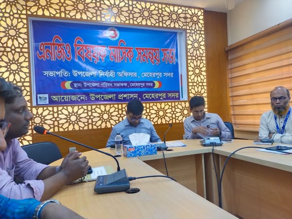 The Monthly NGO Coordination Meeting was held today under the chairmanship of the Upazila Nirbahi Officer (UNO) of Meherpur Sadar Upazila.