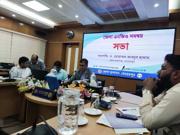 The District NGO Coordination Meeting was held today under the chairmanship of Ms. Sifat Mehnaz, Deputy Commissioner of Meherpur.