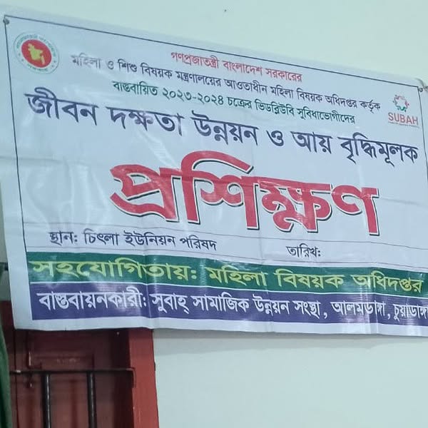 With the support of the Department of Women Affairs under the Ministry of Women and Children Affairs, and implemented by Subah Samajik Unnayan Sangstha, an Income-Generating Training and Rice Distribution Program was successfully held for VWB beneficiaries.
