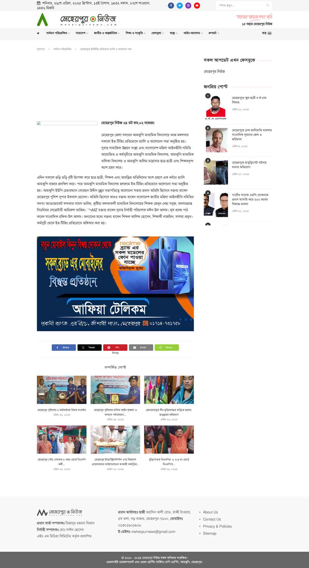 Meherpur News, November 2, 2010: A rally and discussion meeting to prevent eve-teasing was held this Tuesday morning at Amjhupi Secondary School in Meherpur Sadar.