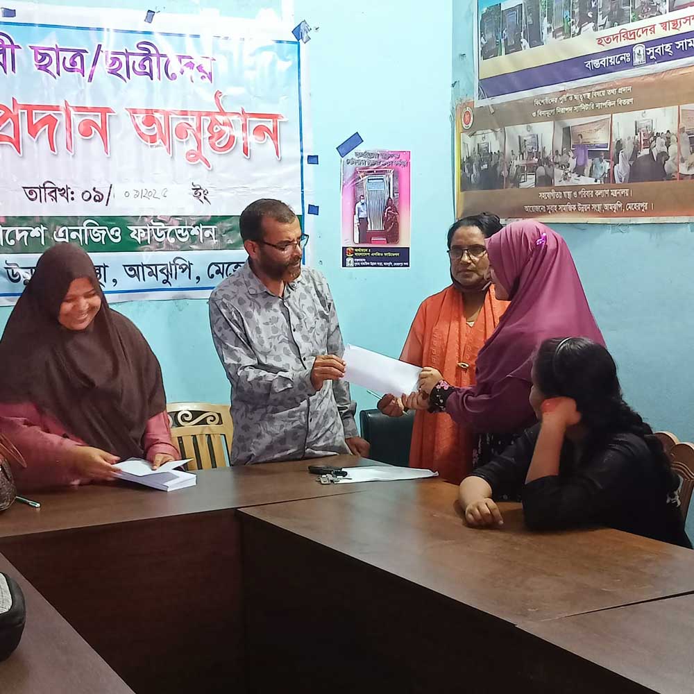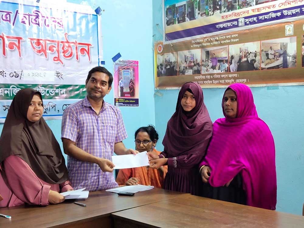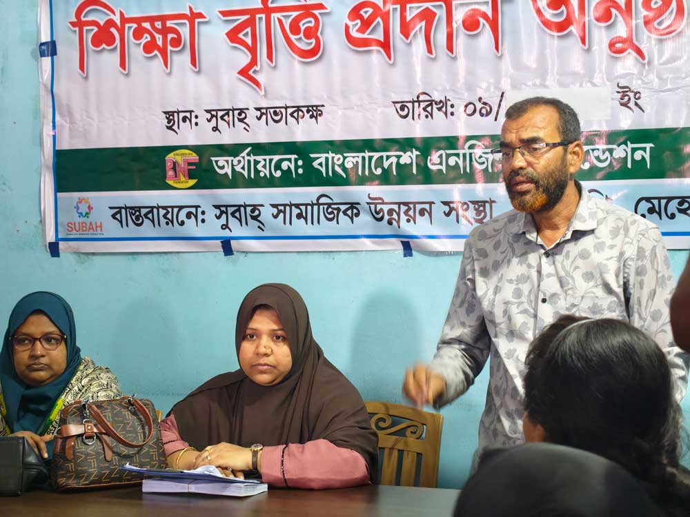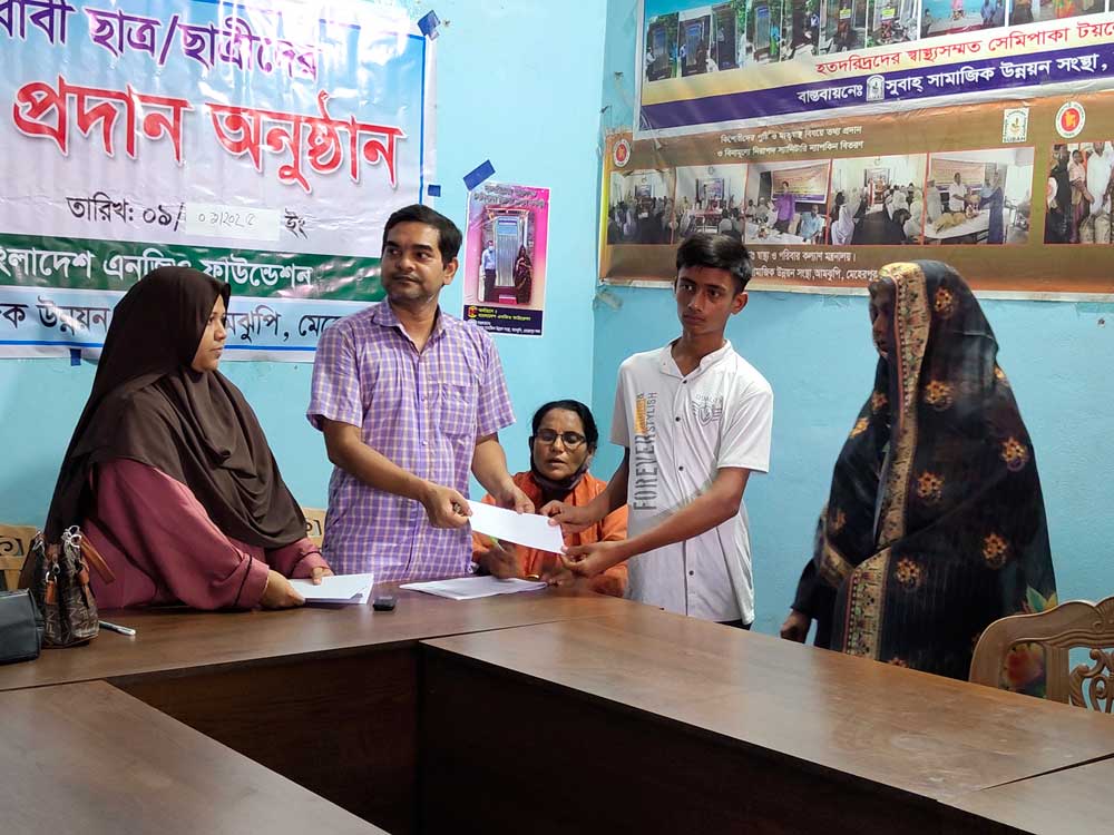 This initiative was implemented by Subah Samajik Unnayan Sangstha under the “BNF Education Scholarship Program,” funded by the Bangladesh NGO Foundation. The program aims to support underprivileged and deserving students by providing financial assistance that helps them continue their education and strive for academic excellence.