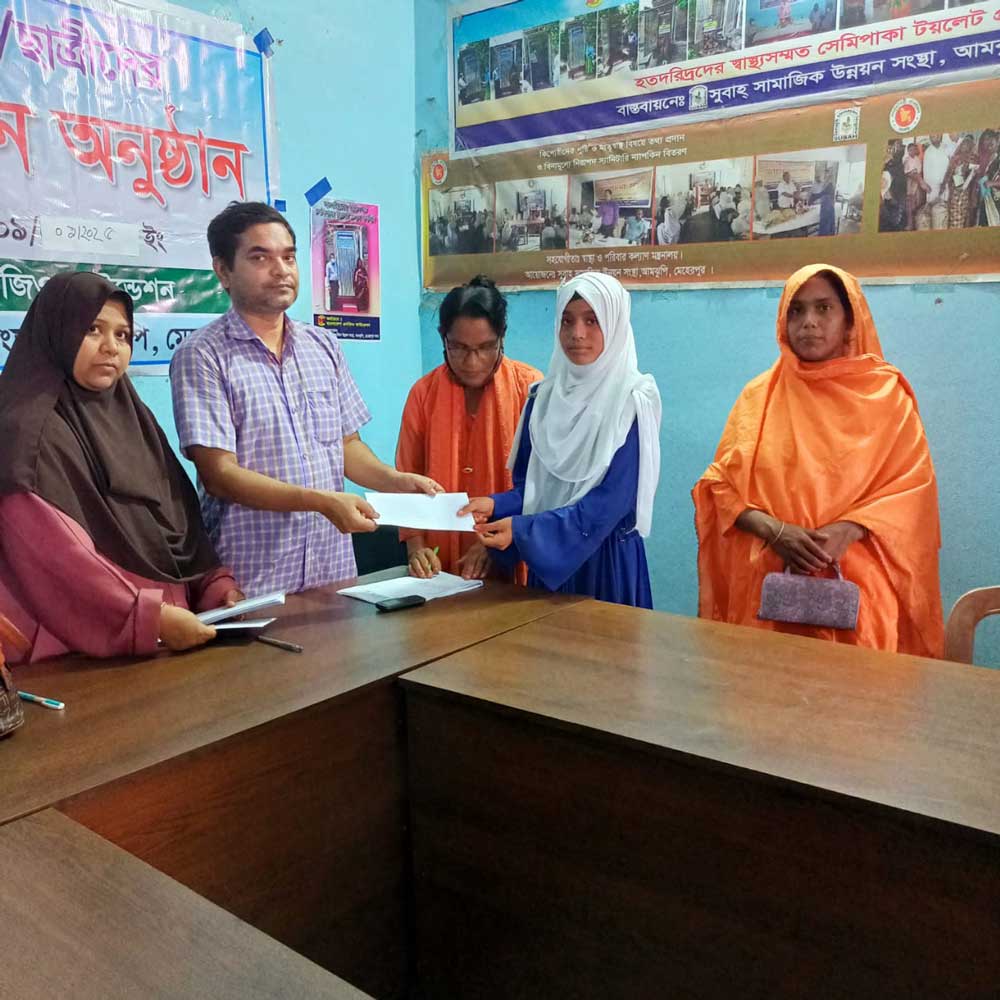 On June 1, 2025, Subah Samajik Unnayan Sangstha organized a scholarship distribution ceremony at its office, where merit-based scholarships were awarded to students from various educational institutions.