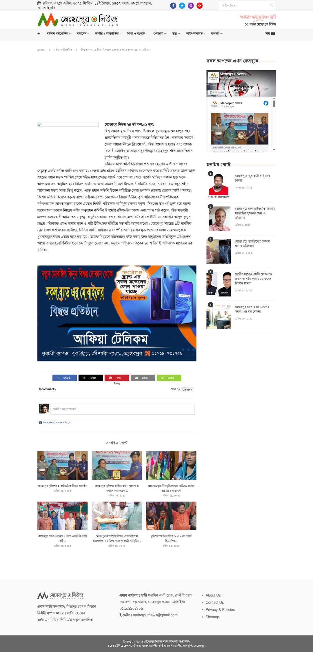 During the event, three public places — the Deputy Commissioner’s Office, the Civil Surgeon’s Office, and the Municipal Building — were officially declared smoke-free as part of the commitment to make Meherpur a smoke-free city.